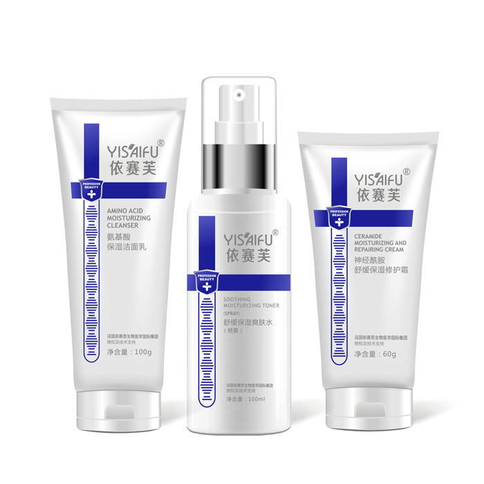 氨基酸保湿洁面乳(100g)+舒缓保湿爽肤水(100ml)+神经酰胺舒缓保湿修护霜(60g)氨基酸保湿洁面乳能温和肌肤,快速滋润肌肤,令肌肤净透细腻。舒缓保湿爽肤水,能即时补水,保持水分。神经酰胺舒缓保湿修护霜能舒缓修护肌肤,保湿锁水,提升肌肤抵抗力。